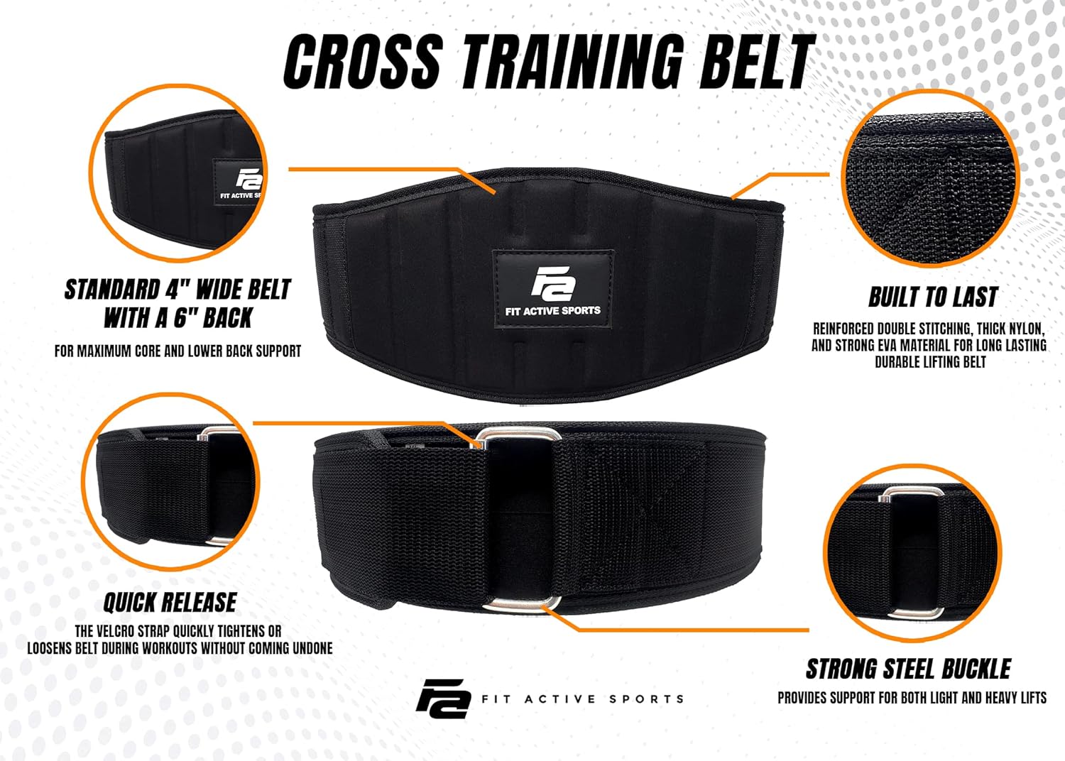 Fit Active Sports Professional Neoprene Weight Lifting Belt for Men and Women | Durable, Comfortable, and Fully Adjustable with Buckle | Maximum Back Support and Injury Prevention