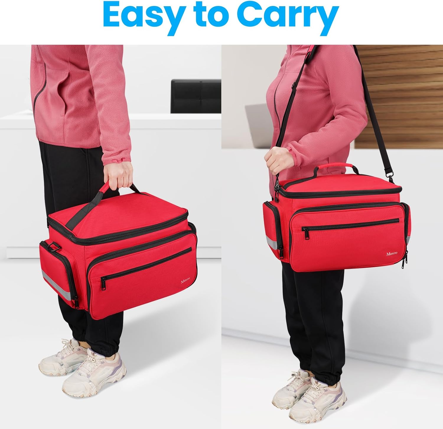 Mancro Medical Bags, Medical Equipment Bag Empty, Water-Resistant Home Health Nurse Bag for Medical Student, First Aid Responder Bag, Nurse Gifts, Red Medical Bag Organizer